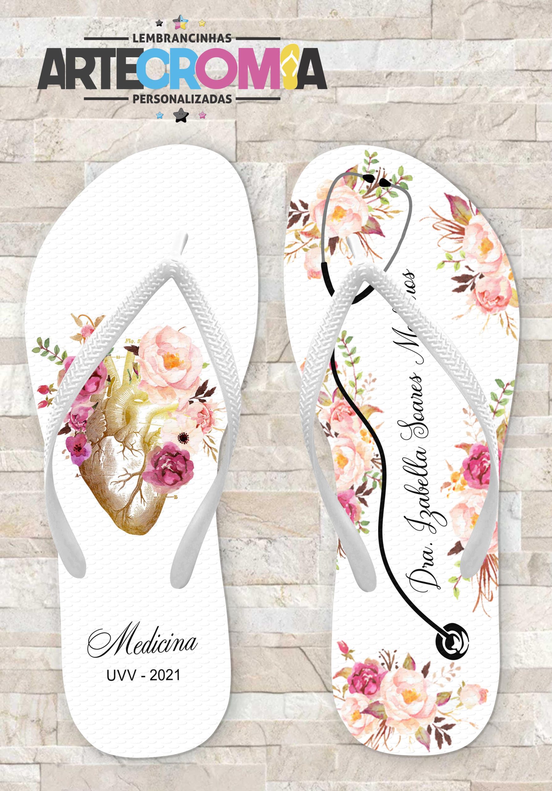 Chinelo Personalizado Medicina Flores MDL 048